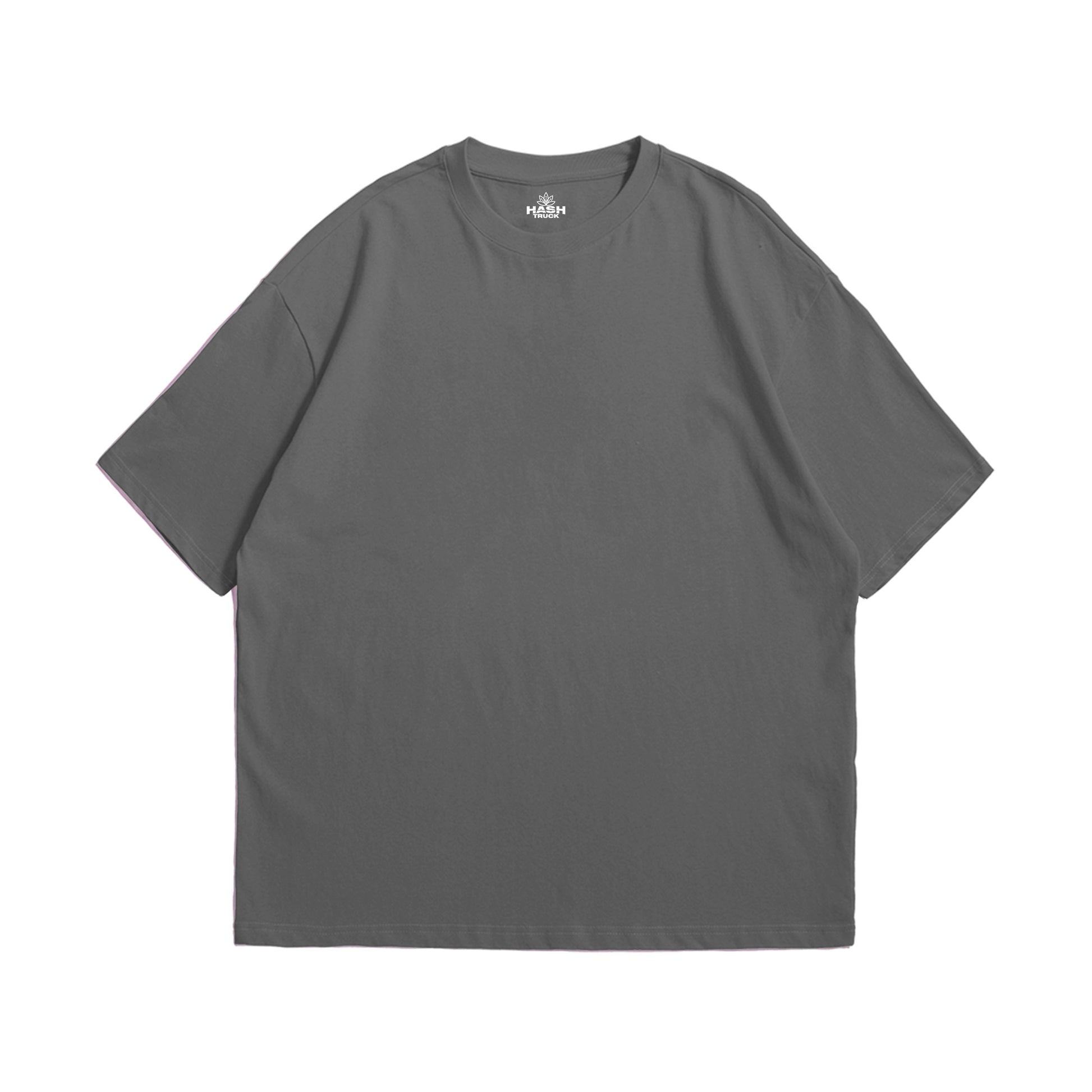 Premium charcoal grey oversized T-shirt for men - heavyweight 100% cotton drop-shoulder plain streetwear tee.