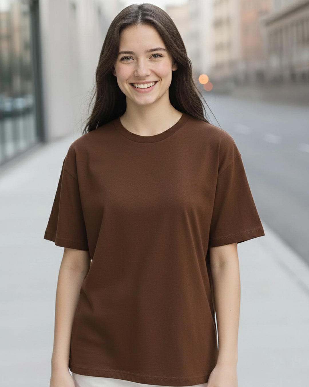 Deep. Earthy. Instantly Luxe. The Rich Espresso Essential tee is designed to ground your look with unmistakable warmth and quality. Crafted from a thick, premium cotton, this Coffee Brown oversized fit offers a relaxed, comforting drape that feels high-end. It's the perfect essential to bring rich, natural tones and effortless style to your daily rotation.