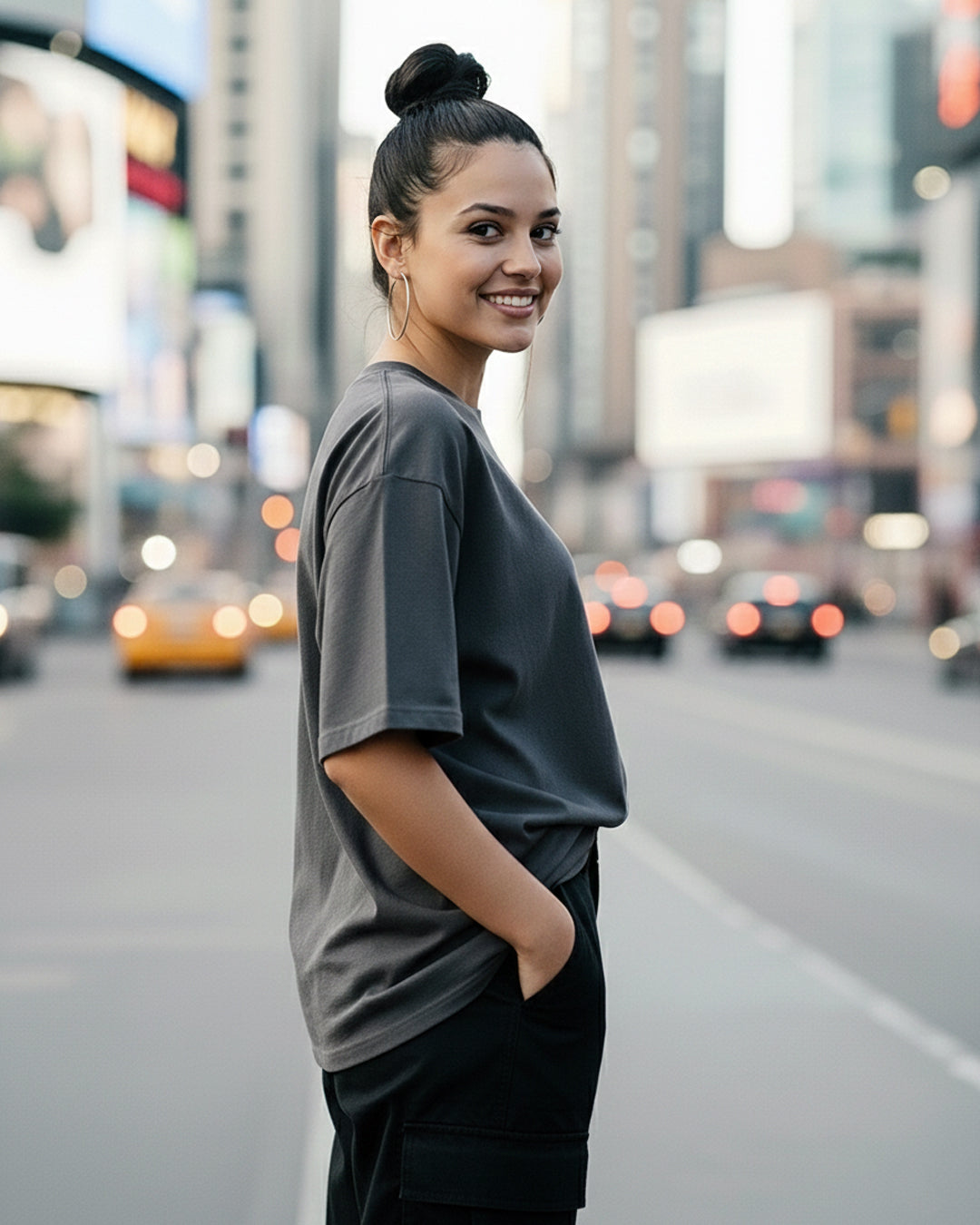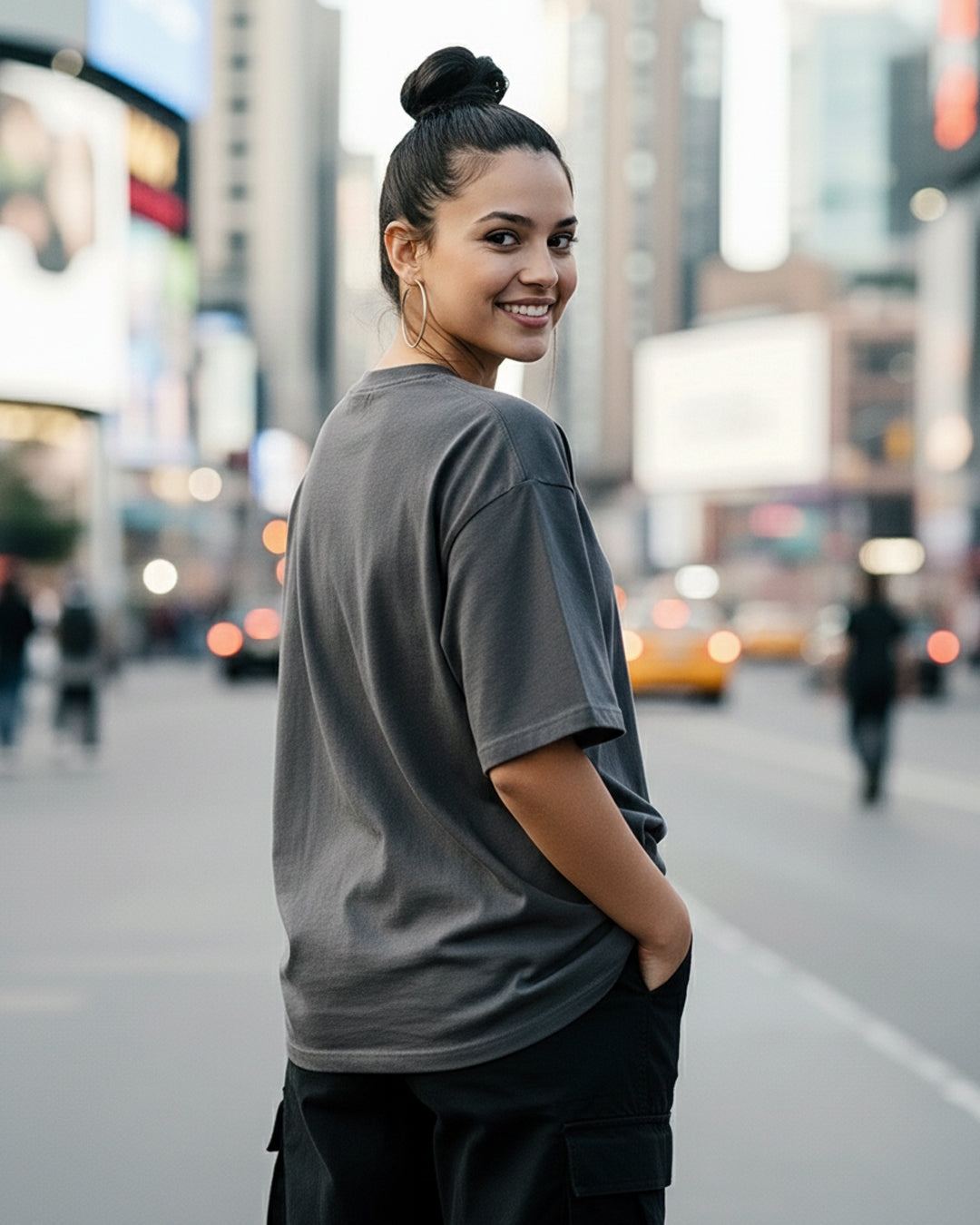 The foundation of style. Effortlessly essential. The Urban Anchor Oversize tee is where structure meets stealth. Crafted from ultra-heavyweight cotton, this piece offers a sharp, confident drape that defines your silhouette. Its deep Charcoal Grey shade is the ultimate neutral, anchoring any streetwear fit with unmatched, monochromatic cool.